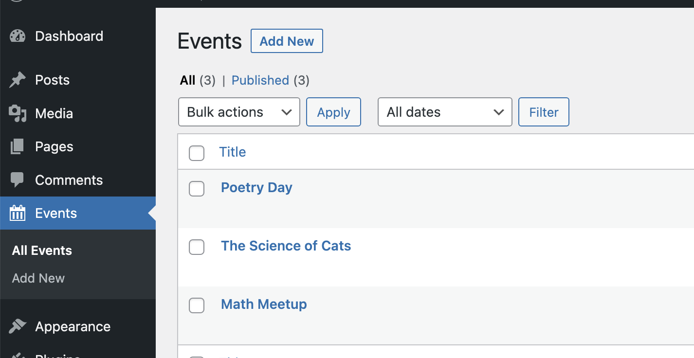 홈페이지에 Custom Post Type 표시하기 (feat. Events)