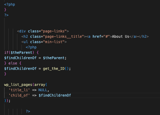 $findChildrenOf = get_the_ID(); (새로 만든 variable)