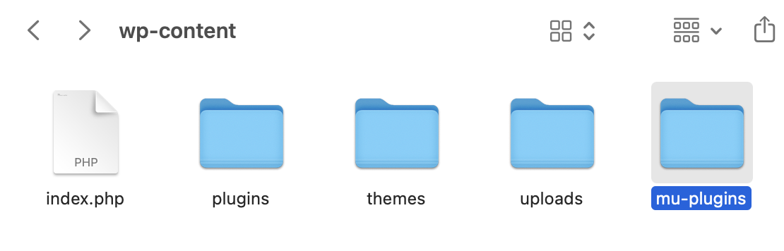 따라서 아래와 같이 테마 폴더가 아니라 플러그인 폴더 이하에 mu-plugin 폴더를 새로 생성하여 워드프레스가 꼭 불러와야하는 기본 폴더 설정으로 만들 수가 있습니다.